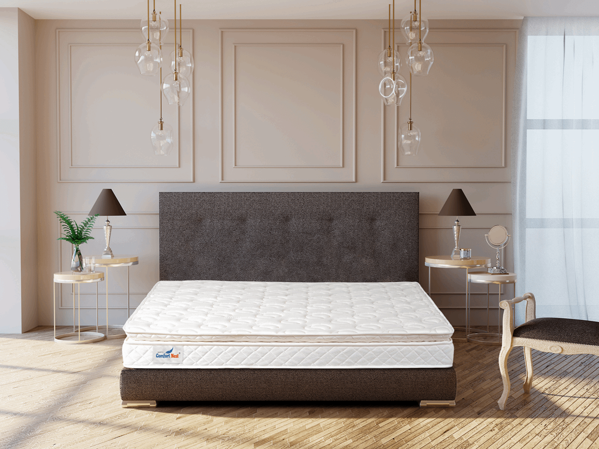 Multiple layers of PressureSense Foam are stacked from top to core of the mattress, and coupled with BodyTech Pocketed Spring core which helps in supporting body contours.